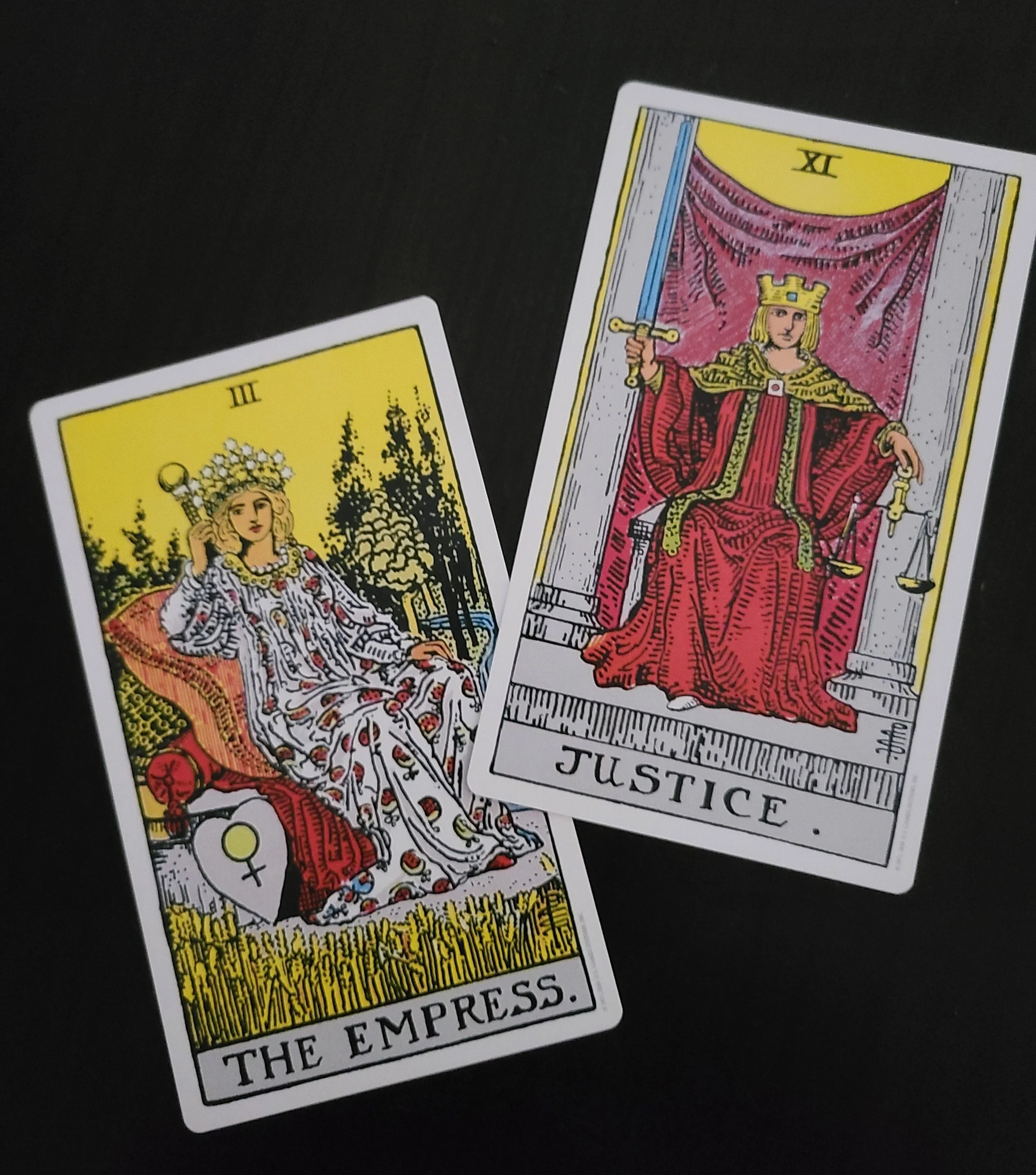 The Waite, Rider, Smith Deck has 11 stars placed on the Empress’ crown whereas older cards show no stars or nine stars floating around her head. Some say the nine stars represent the nine months of gestation, yes, she is understood to be pregnant. Eleven usually means it is the master number in physics. Stars are also our distant home as we are made of the stars, or of the same basic materials.